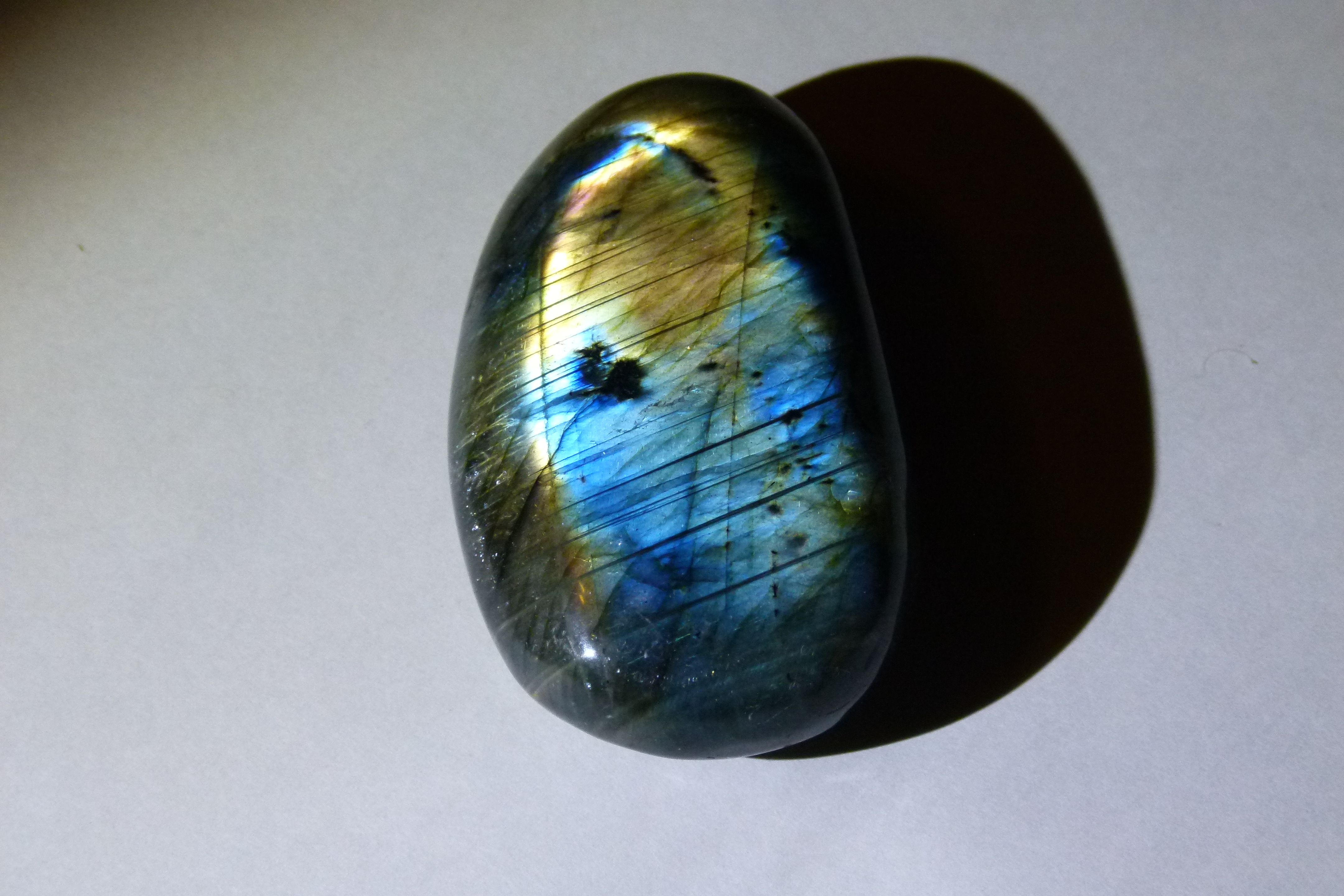 La piedra en diversas tonalidades iridiscentes cambia según la luz y a más luz mayor fuerza de tonos.